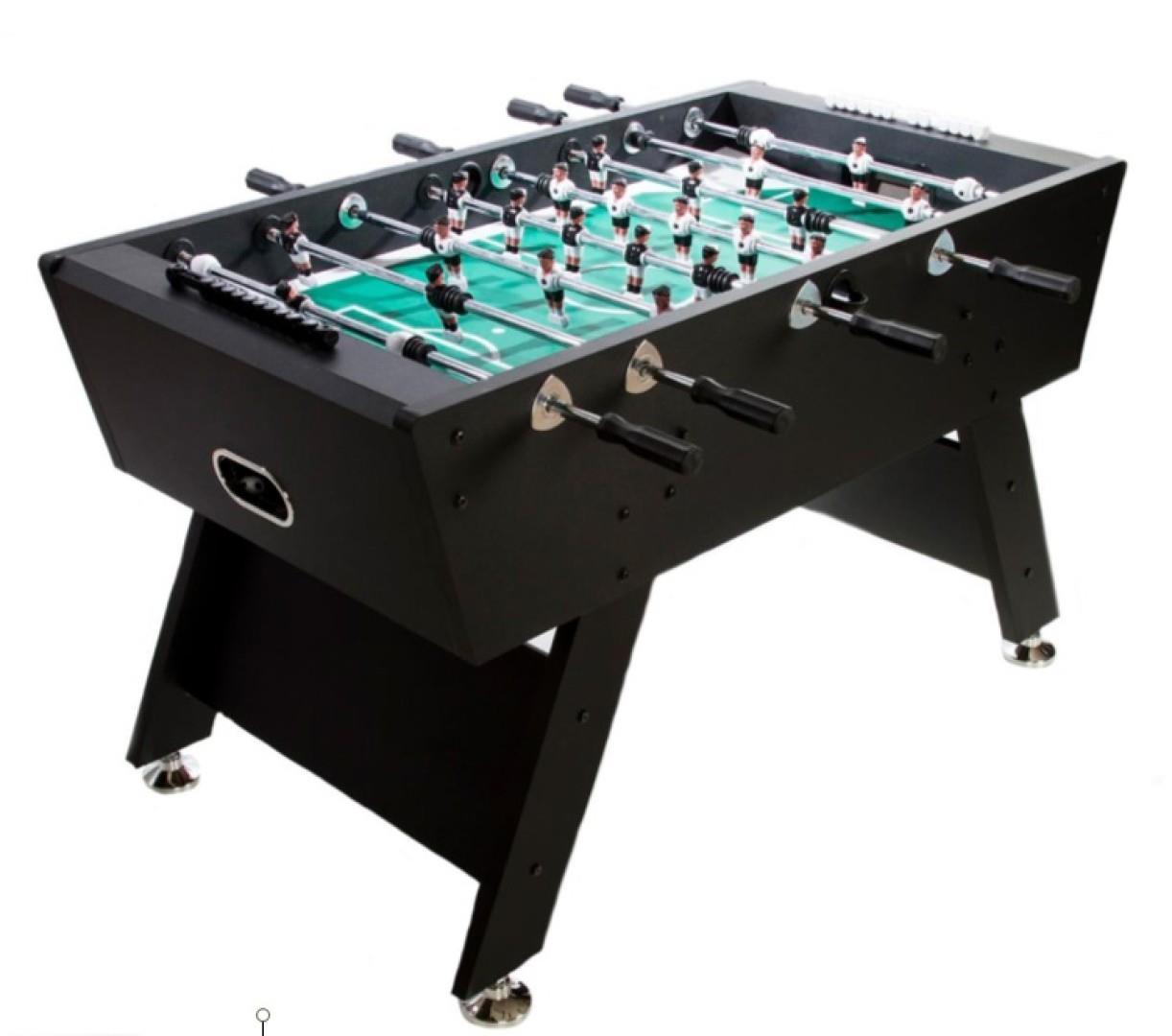 Her kan du købe et virkelig robust fodboldbord, der kan bruges i institutioner og derhjemme. Det solide bordfodboldbord kan klare mange nervepirrende fodboldkampe. Bordet har skrå hjørner og sider, så bolden aldrig ligger stille. Dette sikrer et mere action-præget og hurtigere spil.
